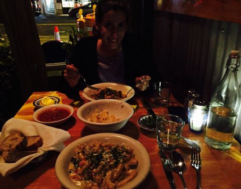 强烈推荐!请注意,他们没有一个白酒类许可但你可以自己带酒,只支付了5美元的开瓶费。伟大的选择!从餐馆走几分钟就有一家不错的葡萄酒店。甜菜,山羊奶酪沙拉,贻贝,一切都是令人难以置信的美味。