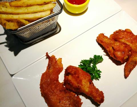 餐前包也不错。炸薯条火候略大,有点干了,不够脆。玉米汤也比较稀,自助沙拉和水果还可以