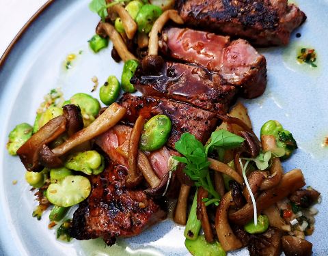 给闺蜜庆生,选了这家有超美露台的西餐厅,而且特意订了露台的位置,一个越夜越美丽的场所。 这家的菜品做的很精致。青口背肉质弹嫩新鲜,每一口都能感受大海的味道。牛排烤得恰到好处,切开来里面的粉嫩颜色,看了很有食欲啊,而且搭配的配菜也有意想不到的效果。 晚上的餐厅更像一个酒吧,叫上一杯鸡尾酒,才能更融合这个美丽的夜晚。
