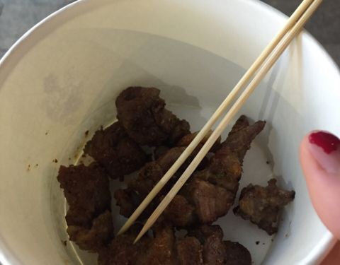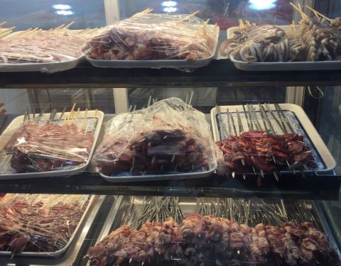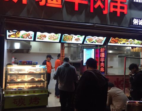 新疆羊肉串在弄堂的一个拐角处,这里的羊肉串味道很正宗,而且每一批都是需要排队现烤的,因此口感很棒