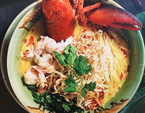 在泰国曼谷,有一家很有名的餐厅。Nara/Apinara,因为环境好,菜式有保证,比曼谷满大街的路边摊好像实在太多,Apinars是Nara的进阶版,最近在香港的太古广场也开了一家店,环境当然是没的说,带来了正宗的高品质的泰菜。当然价格是完全像香港的消费水准靠拢,可不像在泰国那么便宜,点了一份泰式避风塘炒原只龙虾,300多蚊一只,结合了香港避风塘的蒜蓉酥和泰餐里特有的辣度,这样的一只龙虾,吃起来相当的开胃。