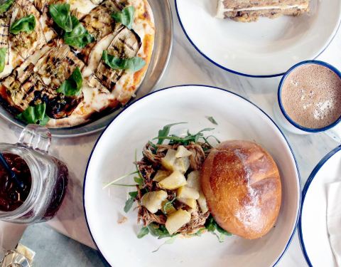Aubergine pizza, pulled pork sandwich, and any pastries and cakes are good. My favorite is always the cinnamon bun.