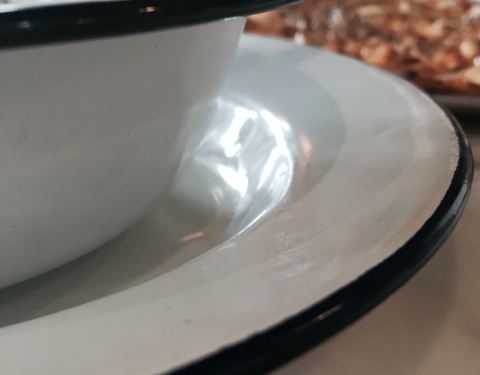 Interesting nook at a new mall. Love the old school metal plates and bowls they use. Friendly & chatty staff. Avoid sitting near the door leading to the mall if you don't like the cold.