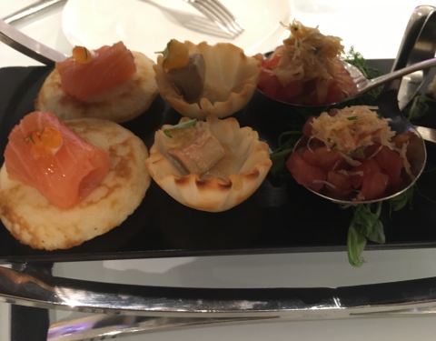 Fauchon在周一至周五下午5:30之前,提出“Afternoon Tea Set”的二人套餐。摆架很美丽,茶点也美味。其中经典马卡龙2个,如果单买,200元/8个。香脆鹅肝酱挞2个,各一小块鹅肝。好精致的美点。