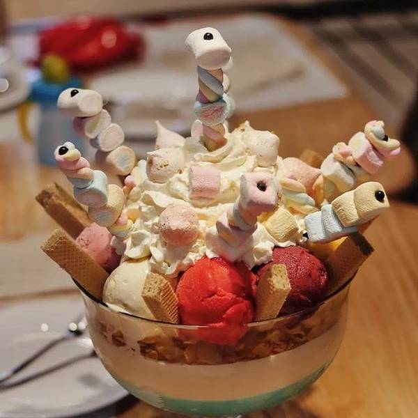这里要顺带说一句!当时网上很火的一个酒杯巨无霸冰激凌。 🌼 Mo&Moshi 就是超大份冰激凌,我们去到的时候才发现网上很火的那种真的太大份了…22颗冰激凌球,加上一圈水果…人民币大概300多一个,越大越贵,两个人也根本吃不完,选择放弃! 📍Siam Center Building,4th floor 营业吋间:10:00-22:00 从网上扒了个图