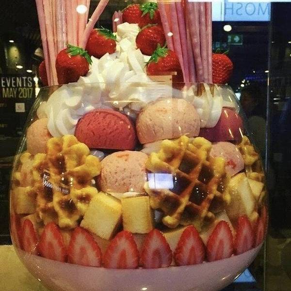 这里要顺带说一句!当时网上很火的一个酒杯巨无霸冰激凌。 🌼 Mo&Moshi 就是超大份冰激凌,我们去到的时候才发现网上很火的那种真的太大份了…22颗冰激凌球,加上一圈水果…人民币大概300多一个,越大越贵,两...