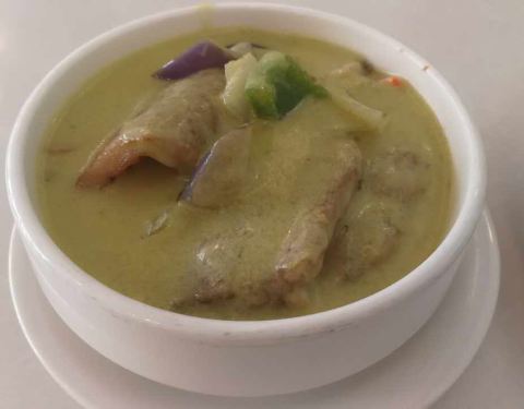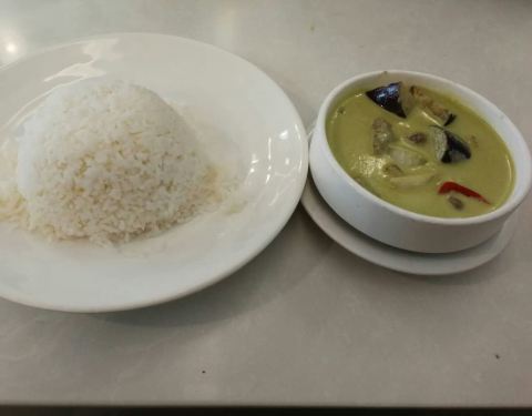 公司附近的餐厅,点了绿咖哩猪排饭,海南鸡饭,绿咖哩微辣,回味不错,猪排还算软,海南鸡饭配油饭,香气不足,鸡肉够嫩,冰鲜鸡不能要求太高。饮料附送。