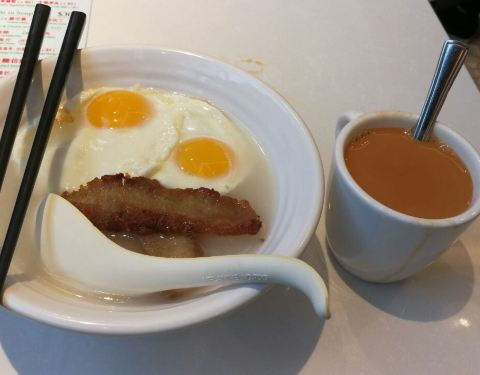 热奶茶,煎蛋不错没有焦或蛋黄部分水水的,猪颈肉就不成,太硬,奶茶个人嫌味道淡了一些,不够浓,但是够滑