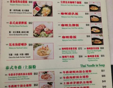 套餐为主的餐厅,但是跟茶餐厅差不多,喇沙是马拉西亚食品但是这里只有名字而已,跟槟城路边摊比,卫生一点外,口味不对,咖哩的辣度降了很多,香味也不多,应该是配合香港市场调整过,星州炒米米粉够乾身,爽口...