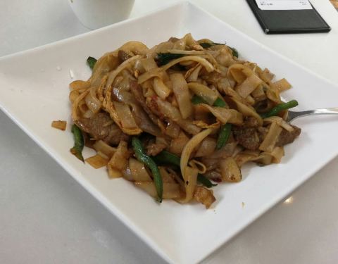 下午茶时间,其实价格不低,环境不错,没有太多人,奶茶够浓郁,香,泰式辣椒酱炒河粉,其实不辣,由于现炒,香气扑鼻,份量比较少但是对我刚刚好,免得浪费。