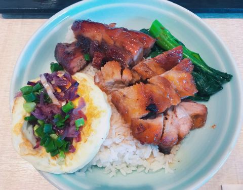 新城市广场真的非常大,逛了一早上有点饿了,就找地方吃饭,发现这家店是港式餐厅就来试试。看了菜单发现有个饭叫黯然销魂饭,那一定要点来试试,其实就是叉烧饭加个荷包蛋再撒些葱花,叉烧真的很好吃。还点了迷你钵仔糕,第一次吃,软软的糕点。还有一个菠萝海南鸡,还不错,鸡肉很嫩还有三个酱可以蘸,配的菠萝也很甜,这顿吃的很满足。服务也不错,态度蛮好的。