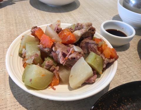 下午三点才要吃午餐,明珠阁全部仍然高朋满座,趁着一张小桌空出,赶紧来尝尝它人潮踊跃的魅力,这里的炒牛肉真的品质极佳,味道好,老火汤的汤料也全部呈现,价位偏高,但是值得。
