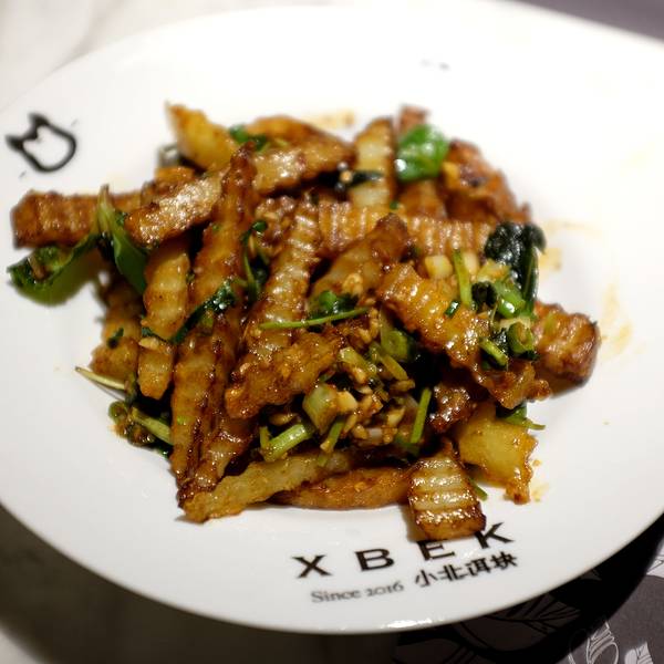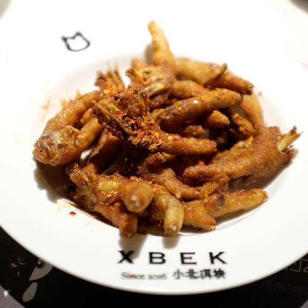 这是一家准备靠颜值和辣征服世界的 年轻云南菜餐厅 餐厅的装修风格清新可爱 菜品辣的我都爱 不辣的老实说有些云南口味吃不习惯 诚实的说,我会再来,辣的很过瘾 餐厅位置: 藏在写字楼众多的东三环 在FFC财富中心的写字楼地下1层 注意不是财富购物中心那边的 两栋楼B1层是连通的 以地铁站金台夕照A口为参照比较好找 当然在附近上班的人都知道 FFC的B1层很多吃饭的餐厅 小北饵块挨着星巴克交通信息: 最方便的是坐地铁10号线 在金台夕照站下车,从A口出来后就是了 开车的话可以停在财富中心的地下停车场 车位还是比较充足的 周末空车位很多,工作日这边人多周末冷清 公交车站是呼家楼南站,步行距离200米左右 非常方便的地段 一开始以为这就是一家快餐厅 解决工作日员工餐的餐厅 来到之后发现是家很有意思的小店 餐厅装修: 餐厅的面积有100平以上 作为快餐简餐类的餐厅,面积还是挺大了 门口整齐的摆放着塑料凳,供客人等位时休息 比较有特色的是门口的招牌 一只黑猫和一只白猫 旁边的餐牌上写着 “两只喵星人为您呈现年轻的云南菜”餐厅内的色调是浅色系为主的 简单,干净,靠墙的位置有沙发座位 座位之间的间隙过道比较宽敞 靠落地玻璃的灯非常漂亮 墙上有装饰画 有一侧的墙上还有花墙 是和网红餐厅很流行的花墙效果一样的 很想去那边拍照 但工作日晚餐时间餐厅内用餐的人不少 花墙那边一直有人坐,下次再来吃时去拍吧点餐可以先找到座位,慢慢看菜单 也可以到吧台这边 吧台正对着餐厅的门就是环境非常小清新的餐厅 每桌都有鲜花的插花据说有些花材是从云南空运过来的餐具也是走可爱路线的 连筷子套都是喵星人图案的餐垫上很大口气的印着 “世界缺少一个年轻的云南味” 突出年轻大概是因为很多菜做了创新吧先从我最爱的一道开始说起 菜名叫现炸香酥 是我觉得辣度和口味很受年轻人欢迎的炸鸡类 虽然上面有辣椒,但没什么辣味 吃起来是酥脆的鸡肉,很香小明酥炸鸡爪 这道和炸鸡的口味是相似的 但口感比炸鸡硬一些 适合喜欢啃骨头的,比较禁吃两道温和的开胃炸鸡过后 迎来了第一道辣菜 半份的牛蛙锅 虽然说是半份,但是菜量真的是诚意满满 里面并没有太多菜,很实在,肉多 肉质非常嫩,好吃第一次知道黄焖鸡也是云南菜 同样也是半份的,已经堆很高了 咸淡刚刚好,但鸡肉不是很嫩外表看起来最温柔的鸡丝,竟然是所有菜里最辣的 这道辣的指数五颗星 不能吃辣的最好不要点了 好在菜量不是很多 无辣不欢的人估计会很开心辣酱炸洋芋 比较喜欢这道菜调料的部分 虽然也是以辣味为主的,但是有香菜和其他香料的香味 土豆的口感也刚刚好,是比较硬一些的小北酥薄荷牛肉 牛肉炖的很好吃,并且是肥瘦都有的 还有一点点筋,口味也不是很厚重 搭配薄荷很清爽,能闻到淡淡的清香 算是一道特色创意菜罗非鱼是小份的 烤的外皮比较焦,上面的调理味道很棒 柠檬汁挤在脆皮里面的白肉上,味道更好 盘里有专门用来挤压柠檬的工具,非常方便对于一个肉食动物来说,有以上这些我已经很满足了 在朋友的强烈推荐下试了下很有云南特色的豆花米线 米线基本是必吃的 口感很滑很筋道,只是这个口味我有些吃不习惯另一道主食我们要了卷粉 这道的香菜比较多,粉是宽的不算厚的 口感很好,可以搭配调料 店内有一个自助小料区,供客人免费取用像我是典型的吃饱了还能再吃一点的 被忽悠着尝试了饵块 对于肉食动物来说觉得它就是油条外面包了饼 再蘸酱的稀豆粉油条 据说正确的吃法是用油条蘸着豆粉吃 也可以直接吃豆粉 里面有一些谷物的料 口感有点像芝麻糊,不是很喜欢蘸水姜饼瓜 第一次看到这样的做法 是捞出来蘸旁边的辣油吃的 虽然看起来红红的辣油,但是没有什么辣味 比较清淡,不是很喜欢餐后甜品是玫瑰鲜花饼 外皮是像老婆饼一样的 中间的馅料很足,有花的香味 吃起来口感是软的,比较受女生欢迎吃那么多道辣菜怎么能不点这杯泡鲁达 据说也是云南那边特色的饮料 最上层是面包,中间是椰奶 下层有红豆 整体感觉不是很甜 但是解辣完全够了餐厅服务: 晚餐时间餐厅内客人比较多 服务员有些忙不过来 但好在我们点餐快,上菜速度也是能接受的 服务员都比较年轻 快餐厅的定位,服务算是一般吧 餐厅价位: 性价比还是不错的 尤其是半份的牛蛙和黄焖鸡,非常划算 米线,卷粉这类主食一般价格在20,30 很适合当工作餐吃,量绝对能吃得饱 没有太贵的菜,价格比较实惠的 很喜欢这家年轻的云南菜的环境 店内喵星人的元素也非常受年轻人欢迎 带辣味和肉的菜都深得我心 素菜比较一般 可能还是吃不太习惯