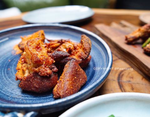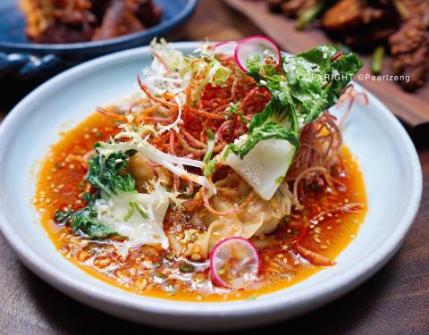 新加坡Birds of a Feather 开业不到十天就上了新加坡米其林推荐餐厅,这家跟纽约唯一的米其林一星中餐一个名字,但是并不是同一家。 主打精品创意川菜+酒吧,中西融合的非常好,每一个区域都有不一样的感觉。 ⚪️Sichuan Red oil Dumpling 四川红油抄手 $15 完全猜不出来是红油抄手,没有传统的红油抄手那么麻,但是特调的汤汁有种微妙感很容易上瘾。 这些菜单写是小吃,但是看到图片你们懂得,都是很大一份,价格在十几块新币左右,约上朋友聊聊天吃吃小吃,点些特调鸡尾酒,浪一整个下午是没有问题的