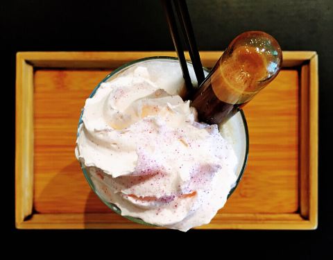 第一口直接喝,清甜绵密的奶油,带着扑鼻的椰香,还能一起喝到冰沙,有那种奶盖茶的丰富口感