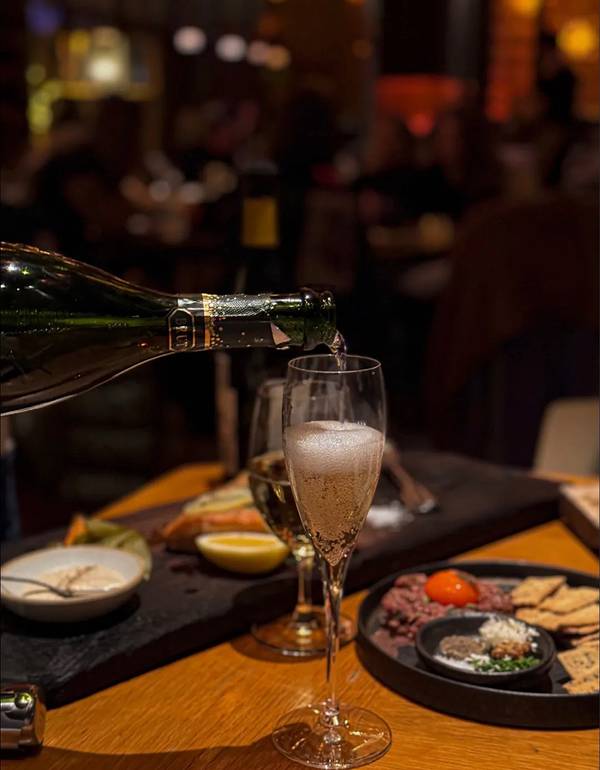 在愚园路,这家西餐厅一开张就超火,魔都时尚潮人都喜欢来打卡,氛围感十足,周末闺蜜们聚餐就约他家啦 整个餐厅设计感十足,柔和的灯光和金色遥相呼应,营造出纸醉金迷的氛围,人气很旺,背景音乐很嗨,门口外摆直面大草坪,还可以带着你的宠物一起来吃饭呢服务员热情周到。 牛肉塔塔2.0 牛肉塔塔细腻柔嫩,酱汁入味,涂抹在脆饼上吃,更增加了丰富的口感,令人回味无穷! 计甜菜根风味土豆: 加了甜菜根治的土豆,红红的颜色很是诱人,甜菜根的甜味与土豆的绵密口感相得益彰,让人在品味中感受到一种新颖的味觉冲击。 牛尾肉酱: 牛尾熬煮成肉酱、肉香扑鼻,搭配香脆的吐司片,好吃到停不下来。 1/4雪松烤三文鱼: 现点现烤,摆盘精致,上桌就被惊艳到了,三文鱼经过雪松木的烤制,呈现出独特的香气和味道。鱼肉鲜嫩多汁,滴上柠檬汁,搭配特制的酱料,口感十分丰富。 海陆拼盘套餐: 厚切肋眼牛排+优选生蚝。五分熟的肋眼牛排,肉质柔嫩多汁,满口的肉脂香气,进口的生蚝则保持了其原汁原味的鲜美口感,搭配柠檬汁和酱料,清新爽口,口感鲜美,再配上一杯葡萄酒,和朋友吃吃喝喝聊聊天,感觉太开心了!
