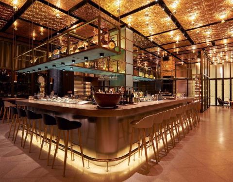 朋克风格的海派餐厅,金色吊顶灯光旖旎
