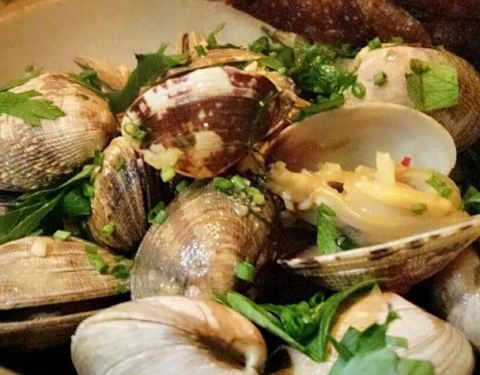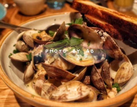 单位附近的西餐厅,环境有点酒吧风格,好喜欢他们家的环境哦,老外光顾的很多,气氛很轻松,菜分量很足,酒烧蛤蜊最后剩好多,鹅肝罐头也很嗲。熏肉巧克力很特别。