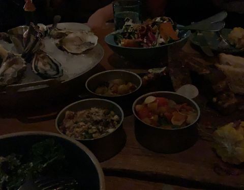 厚切肋眼牛排+优选生蚝。五分熟的肋眼牛排,肉质柔嫩多汁,满口的肉脂香气,进口的生蚝则保持了其原汁原味的鲜美口感,搭配柠檬汁和酱料,清新爽口,口感鲜美,再配上一杯葡萄酒,和朋友吃吃喝喝聊聊天,感觉太开心了!