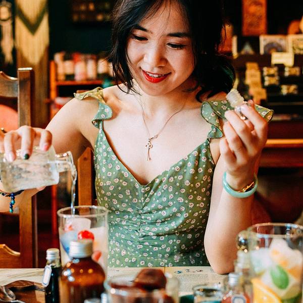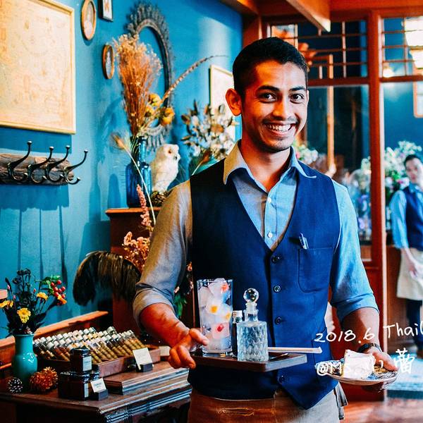 位于Ekkamai区的Featherstone真的是颜值爆表 哈利波特风浓郁的外观 里面则是沉稳又亮眼的孔雀蓝 还有一区是卖小首饰和女孩子的饰品 基本满座噢 可见受欢迎程度 点完单我们一点儿也没闲着得拍了起来店内各个角落拍照的顾客很多呢 而且店里的小哥儿还不停地鼓励大家四处去拍 一直热情地说:后面也很漂亮 一定要去拍 真的是非常活泼了就是这位啦 点单的时候阿敏想要一个看上去超浓郁的巧克力蛋糕 这位小哥哥略带羞涩(没错!他真的有点脸红)地跟我们说:巧克力蛋糕没有了 因为被他吃完了...不过椰子蛋糕才是招牌呢 更好吃噢 超机智得我问他:不对噢 如果椰子更好吃 你为什么不吃椰子 反而把巧克力的吃完了! 他脸又红了红:因为店里不给吃椰子的 好吧好吧 信了你 接着我们点饮品 点到气泡水的时候 他说:这杯里面不带酒精噢 我说 啊 为什么不 他紧跟着说 那我可以额外给你一个shot的vodka 很好喝哦 我刚还喝了 他又神补刀了一句说 而且我现在喝多了 有点飘! 哇少年 就凭这一点 我们可以做朋友所以我们一共点了三杯饮品和一份蛋糕 因为太美了所以照片有点多别介意不只是店铺装潢很中世纪 连杯子也很复古风 自己调饮品实在很喜欢 感觉自己法力无边(阿敏:那是你幼稚)他们家的冰咖啡很有趣 直接用咖啡冻了冰块 加了牛奶进去 这样冰咖啡的口感也是渐变的 喜欢!被 曼谷 所有的层次感咖啡宠坏了!这个就是小哥哥酒后吐真言力荐的椰子蛋糕 颜值嗯...真的很一般 味道是!惊艳!好吗!真的太好吃了 浓浓的椰子香 一点都不腻 推荐!给我喜欢的瓶子一个特写这是Featherstone的一个最有意思的 抽签 虽然写的都是些适用于任何事情的人生鸡汤 例如:“坚持你相信的 就一定能获得 成功 ”之类的 不过抽的时候还是很有趣的 也可以自己带回家做纪念啦 等等别走 吃完还要去后面拍拍拍 毕竟是我半小时前的新朋友的力荐 那么就去看看森林系+古堡系的混搭 简直戳中中年少女心好吗 建议就是尽量避开人潮吧 毕竟店里还提供餐食 下午茶就如此火爆 感觉饭点应该会很满座 Tips:Featherstone Bistro Cafe & Lifestyle Shop 地址:60 Soi Ekamai 12, Sukhumvit Road | Bangkok, Bangkok 10110, Thailand 营业时间:10:30am - 10pm 价格小贵噢