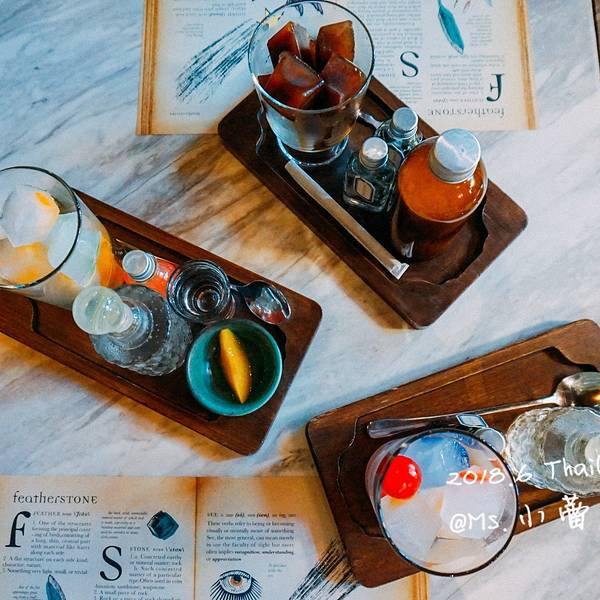 位于Ekkamai区的Featherstone真的是颜值爆表 哈利波特风浓郁的外观 里面则是沉稳又亮眼的孔雀蓝 还有一区是卖小首饰和女孩子的饰品 基本满座噢 可见受欢迎程度 点完单我们一点儿也没闲着得拍了起来店内各个角落拍...
