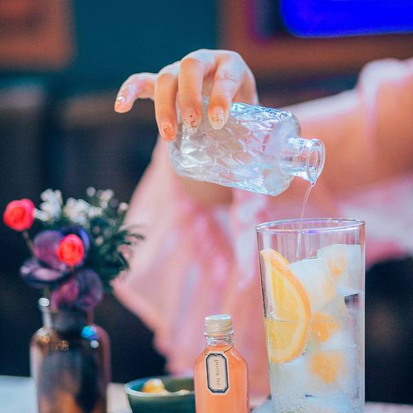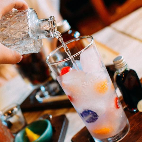 Wild gardenia ( with floral ice cubes), a version of lavender soda I guess