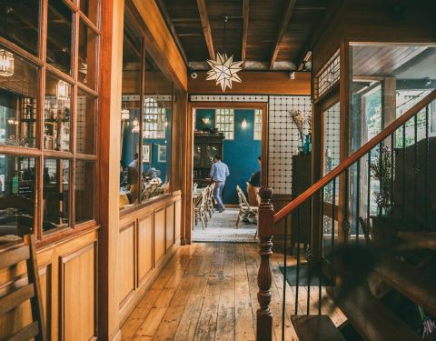 曼谷 这个与时俱进的大都市,这些年给我种草了不少网红餐厅。貌似现在随便一个高颜值的咖啡厅都能叫做网红餐厅了?但来 曼谷 ,我首先推荐的还是这一家。 Featherstone Cafe & Birstro 地址:60 Soi Ekamai 12, Sukhumvit Road | Bangkok, Bangkok 10110, Thailand 交通方式:搭乘BTS到Ekkamai站, 然后再转出租车前往 开放时间:上午10:30 - 下午10:00(星期一休息) 在泰坤逸路上,有很多这样高颜值的餐厅,我们因为这趟行程比较随心所欲,所以只每天安排了一次下午茶探店,结局就是每次都要从一个老远的景点打车过来,再打车去另一个老远的景点。还是建议合理的规划好行程,因为 曼谷 真的好堵好堵啊!复古风的Featherstone Cafe & Birstro这家餐厅也是走的复古风,对于我这种有复古情节的人来说简直不能更爱了好么。可惜二层的阁楼我去的时候并没有开放,不然真想上去一探究竟呢。适合气质温婉的小仙女们来拍照~小小的咖啡厅居然就有三部分组成,这是刚进门出的古董店。小小的角落里摆放着一些精致的日用品,有帽子、胸针、项链等等。这部分区域的东西是不被允许拍特写的,只可以拍大场景。古董店精心布置的陈设精致的摆件让我恍然间还以为又去了一个博物馆呢,又或许是某座古堡的小小角落?每个小物件都精致极了!古董店区域一角-1古董店一角-2由于我们去的时候已经没有正餐了,这个时候来的人反而少,又有一种包场的感觉,可以尽情的在这里拍个够!咖啡厅区域也很美再来一张!两位用餐的小姐姐和谦卑有礼的服务员可以百无聊赖待一下午~本来也没有仔细看推荐,不知道点什么好,只好选了两个颜值较高的饮品,没想到口感出乎意料的好,是我们探店的三家咖啡厅里最满意的一家,只是价格也几乎和国内差不多了,两杯下来差不多650B左右,依然觉得钱花的超值,能在这么美好的地方和闺蜜来一个美美的下午茶,应该是旅行里不可多的的时光了,视觉让我如此贪恋这里~!美美的饮品重点推荐这个蜜桃苏打水,应该是银生里喝过的最好喝的苏打水并且没!有!之!一!光看这炸裂少女心的器皿就已经让我被迷惑了。冰块里冷藏的是新鲜的黄桃,再将苏打水缓缓倒进杯子里,最后配上蜜桃糖浆,一股沁人心脾的果香就已经弥漫在空气中了,就连准备的过程都是如此美妙,容我再赞叹下 泰国 人的创意,生活美学真是随处可见啊!重点推荐的蜜桃苏打水!最有意思的是,结完账之后服务生会提醒我们记得从这个小瓶子里抽签儿(其实有可能也只是赠送的一句话)。还别说,每次都觉得在 泰国 抽的签神准,几乎就是直击心灵!为什么这么说呢,因为每次抽签之前我都会在心里许下一个愿望,没想到抽签出来的解答都让我觉得几乎就是我心中问题的答案,绝对不偏题。 至于你问我抽中的是什么,你就猜猜呗~抽签儿结账第三部分区域就是这个更加复古的花园般的餐厅了,想想和一群好朋友在这里来顿烛光晚餐,不能更浪漫了好么!花园般的餐厅区域!每个区域都能来几张美图!推荐指数是爆灯星!
