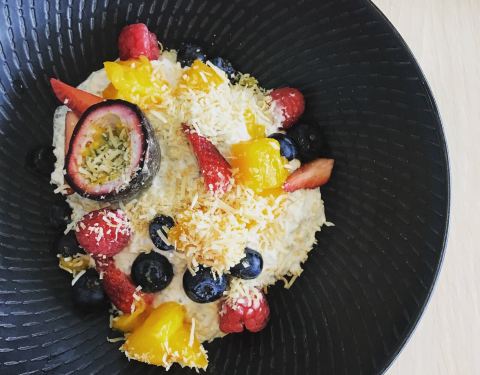 Pancake除了颜值够高以外,也很厚实好吃,淋上的酱竟然有奶茶味,很搭!☕️ 椰浆Acai Bowl比较健康,混着当季芒果一勺送入嘴里简直一秒感受夏天的美好!