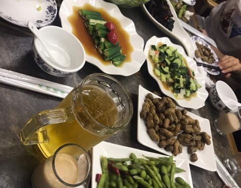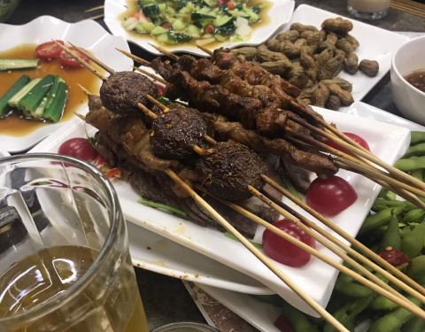 吃的很好,人均80,大盘鸡有点啦,鸡块切的太大,土豆也超级大,鸡肉有些老(骨头很大啊)总之还是烤串是必点的。其他的看着来。原浆啤酒有一种隔夜的绿豆汤的味道。。口感有点绵稠。
