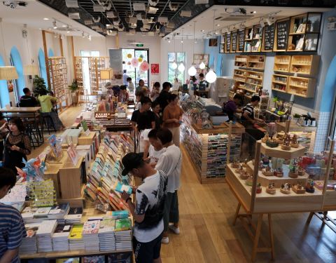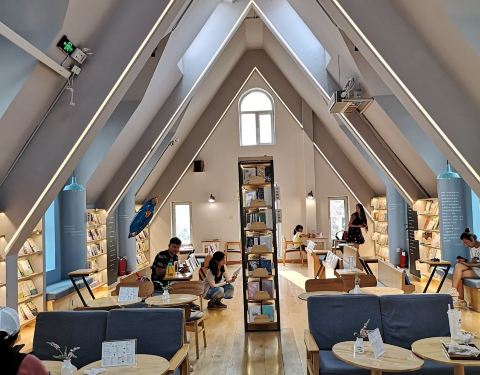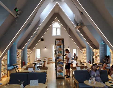 全国性的连锁书店,到这里喝一杯饮品多过买一本书。开在这个水城里是一道独特的风景线。二层楼的占地面积,独栋的别墅,算是最奢华的书店了。
