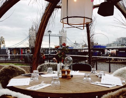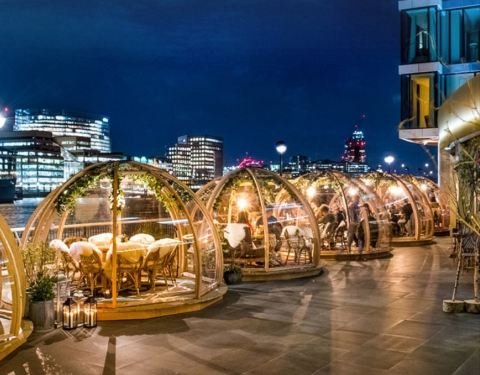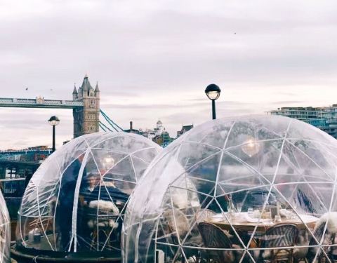 位于泰晤士河旁的Coppa Club餐厅是伦敦热门的网红餐厅之一,餐厅有一个宽阔的露台,露台上摆放着几个透明的泡泡屋,每个泡泡屋都能够欣赏泰晤士河最美的景色。