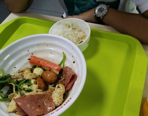 能吃饱 真的能吃饱。。确实能吃饱 。有米饭呜哈哈。味道还不错的哈哈