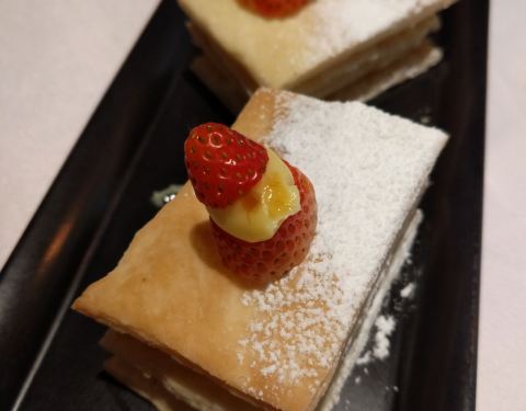 环境格调很nice,欧风花园的感觉,开窗透绿,服务还不错,下次还想再来的餐厅,第一次去晚餐的时候正逢婚礼包场有些遗憾。 【鲜榨西瓜汁】很大一瓶,好喝,清新的口感,微甜入口,好喜欢。 【香芒奶酪酥】做工精...