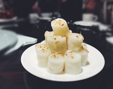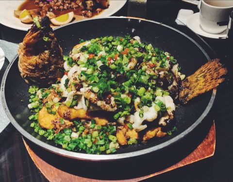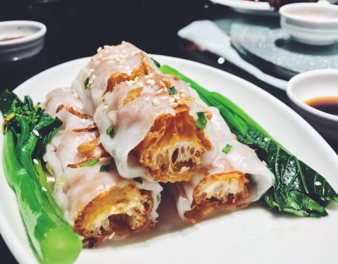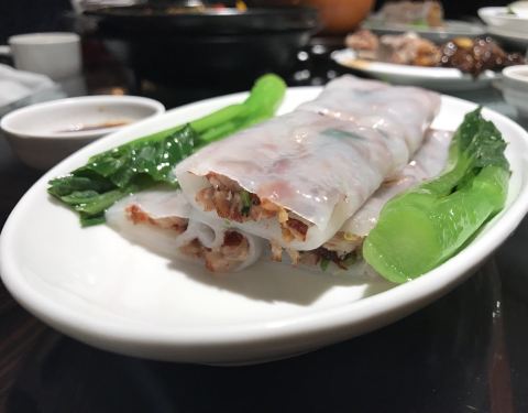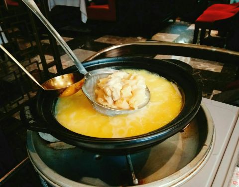 在附近的一月花园下午茶,就近定了这里的晚餐位子。 之前在陕西南路那边分店吃过觉得蛮好吃的,这里觉得一般没那里好啊,难道不是一个老板? 这家环境到时好很多,有种老香港的味道。 杏仁蛋白露(之前别家分店吃个这个觉得太好喝了,还和朋友说他家杏仁茶是我吃过最好喝的,结果这家完全不是啊这个味啊!我们四个人人手点了一杯,一口下去浓浓的牛奶味,牛奶到是用的鲜奶,但杏仁味很淡很淡,几乎吃不出,感觉只是点了杯热牛奶。。。难道是因为点了四杯放少了?而且也没有那家的浓稠感,于是叫来服务员要求加杏仁粉,自己放了点后稍微有点味道了) 沙姜鸡(沙姜的味道很淡,主要是酱油的味道了,怪怪的,正宗的沙姜鸡不该是这个味道) 鲜虾肠粉(这道不错,皮子薄透,里面的虾仁个大饱满) 流沙包(一般了,没有蛋黄味) 芥末猪手(也是之前吃过觉得好吃才点的,谁知也不好吃,猪手火候没到,偏硬,味道也没进去) 鱼片粥(其实不是鱼片,很奇怪的质感,是鱼糜捏成块的做法貌似) 榴莲泡芙(也是没之前那家好吃,榴莲酱为主,吃不到果肉,榴莲味不重,酥皮做的还可以。) 椒盐掌中宝(最好吃的一道,避风塘蟹的做法,香脆) 有点失望,没之前另外家做的好吃。 朋友看到我发的朋友圈后,说本来明天也来这里的,果断换店,不知道现在别家分店水准如何了