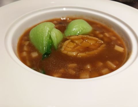 每次不知道怎么选,选粤菜准没错, 这家比较特别,不是那种随处可见的连锁, 老派而低调,踩着楼梯而上, 环境不用多说,到处可见艺术品,赏心悦目, 圆台面的桌子,一直都有印象加分, 吃饭前先来一碗汤,滋补美容, 也是广东人传统的吃法, 潮州卤味也是下酒好菜, 乳鸽烤得恰到好处,外皮香脆, 肉质饱满有汁水,一人可以独食一个, 竹蛏王个头很大的,爆炒口感很好。
