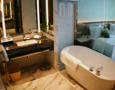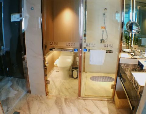 - 酒店员工服务态度很好!客房比较大,卫生区域面积非常大,设有双人洗漱区;设计酒店,形如其名,大船