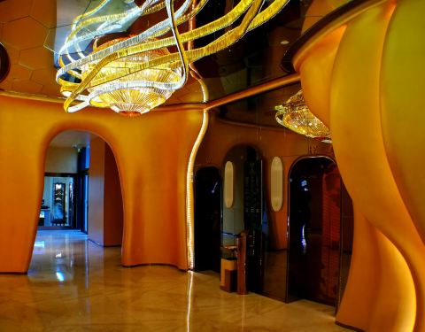 - 酒店里边还有个模拟南极的咖啡吧比较新颖,酒店大堂进来电梯间也很有特色,金碧辉煌的感觉