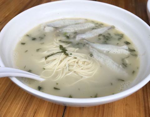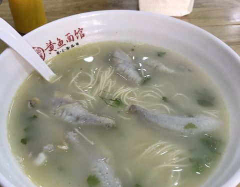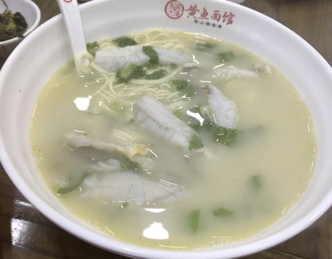 蓝村路上名气很响的面馆,黄鱼面,黄鱼春卷,都名声在外。最近去,发现价钱略有上涨。黄鱼面,原汁原味的汤底,黄鱼都是剔骨处理好的,这碗面,让人回味无穷。炸猪排就比较一般,大骨头和筋占比很多,真正入口的...蓝村路上名气很响的面馆,黄鱼面,黄鱼春卷,都名声在外。最近去,发现价钱略有上涨。黄鱼面,原汁原味的汤底,黄鱼都是剔骨处理好的,这碗面,让人回味无穷。炸猪排就比较一般,大骨头和筋占比很多,真正入口的部分差不多只有一半了。