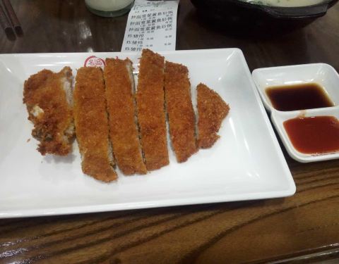 - 炸猪排就比较一般,大骨头和筋占比很多,真正入口的部分差不多只有一半了。最近去,发现价钱略有上涨