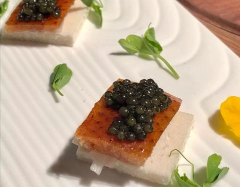 北京烤鸭闻名世界,但北京烤鸭闻名店才不只有刻板印象里的全聚德,这次也要吃个高大上的烤鸭店。有幸打卡晟永兴,真的也是名不虚传,烤鸭才不只有传统的吃法呢,鱼子酱配枣酥香烤鸭,好新奇的一种烤鸭吃法,满满的高级感,似菜又似甜品,超级惊艳!