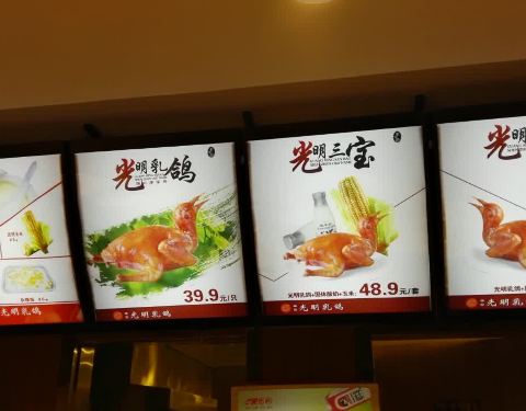 【口味】鼎鼎大名家喻户晓的光明乳鸽,大家都蜂拥慕名而去,在这里可以不用跑那么远而品尝到一样的滋味 【环境】店面设计很小,有些局促,更适合打包