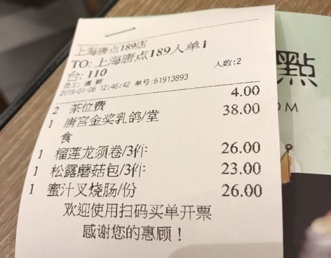 唐宫茶点在189弄人气超高,我们错峰过来吃午饭,大概1点左右,当然主要看人品,我们来了几次都没有排队[偷笑]充值会员可以享受优惠价,具体看店家菜单,唐宫金牌乳鸽必点,嫩嫩的,皮与肉都烧炸的. 恰到好处,咬一口是有汁水的,推荐。榴莲龙须卷我非常喜欢,榴莲应该是新鲜的果肉,保留它的原汁原味,点赞。