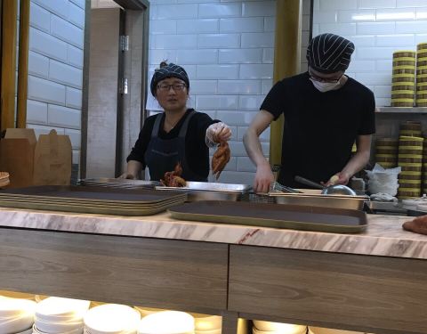 来吃了两次,乳鸽每次都点了,个人觉得味道闻起来不错,翅膀部位还可以,肉厚的地方一般。 酱鸭跟想象中的甜不一样,是属于熏鸭,咸鸭,不推荐。 炒牛河用豆豉做的,味道还挺特别。 浓汤时蔬,芥蓝有点老,不推荐。 其他都还行吧,跟唐宫有差距。
