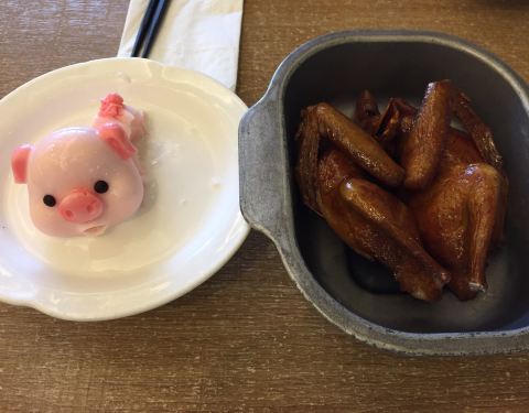 189中午都是附近的白领,都坐满了。虽然朋友觉得蜜汁叉烧肠很油,居然是我觉得最好吃的;乳鸽向来是必点,一如既往的喜欢;金牌榴莲酥朋友点的,下午要上班的人居然敢吃这个,可见味道不是太重;椰汁枣皇糕以及不记得菜名的各种是后来加的,也还行。