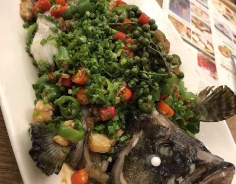 豉汁蒸排骨,排骨入味特嫩,芋艿也好吃。青花椒海鱼,前段时间有活泼88元/份,现蒸的,个头不小