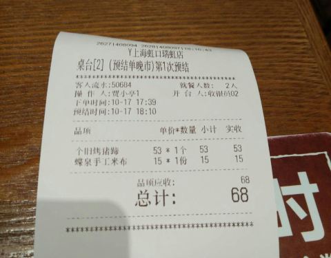 今天好不容易放晴了诶,瑞虹这边商场设计的不错,就是人气还没上来,什么时候像红龙那么多人就强了! 今天专门过来体验新菜品的,诶对就是这个猪蹄子,还有这个米布,猪蹄子肥而不腻,而且满满的都是胶原蛋白的感...今天好不容易放晴了诶,瑞虹这边商场设计的不错,就是人气还没上来,什么时候像红龙那么多人就强了! 今天专门过来体验新菜品的,诶对就是这个猪蹄子,还有这个米布,猪蹄子肥而不腻,而且满满的都是胶原蛋白的感觉,那个粉末调料太咸了,建议不占,但是那个醋一定要沾特别提味!米布的话就是个糯米甜品,不过味道很好!奶味浓郁!