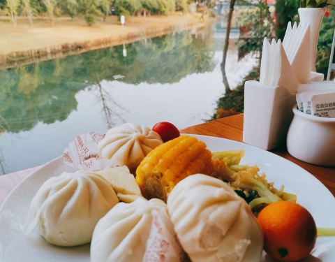 白色码头餐厅装修风格很棒,早餐品种多,有西式早餐,也有中式的,去晚了也不用担心菜没有,边吃边看东方绿舟园内风景,真的是一种享受,