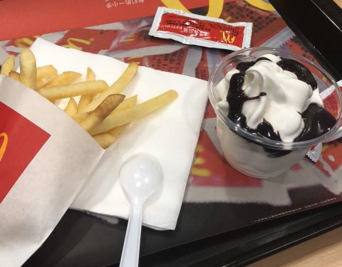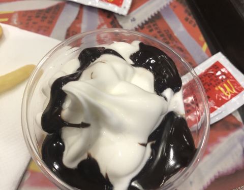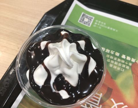 有时候下午饿了会来这里,点一份1+1,便宜又好吃,今天来,点了一份小薯,刚出锅的,非常好吃,还有永恒不变的巧克力冰淇淋,美味!