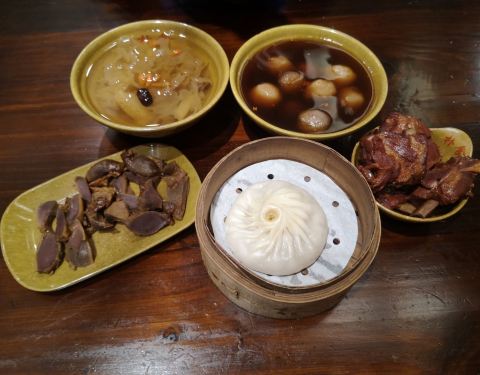 本来先去的旁边的珺客堂,那个似乎评价更高,不过没有我想吃的东西,就来了朴食。要的全是小吃,因为不是特别饿。梨汤挺好喝的。