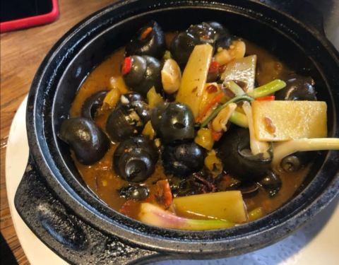 ...,那个田螺焖鸡味道还可以,点的其它的什么腊味拼盘,清蒸多宝鱼什么的,超级难吃,还没我婆婆做的好